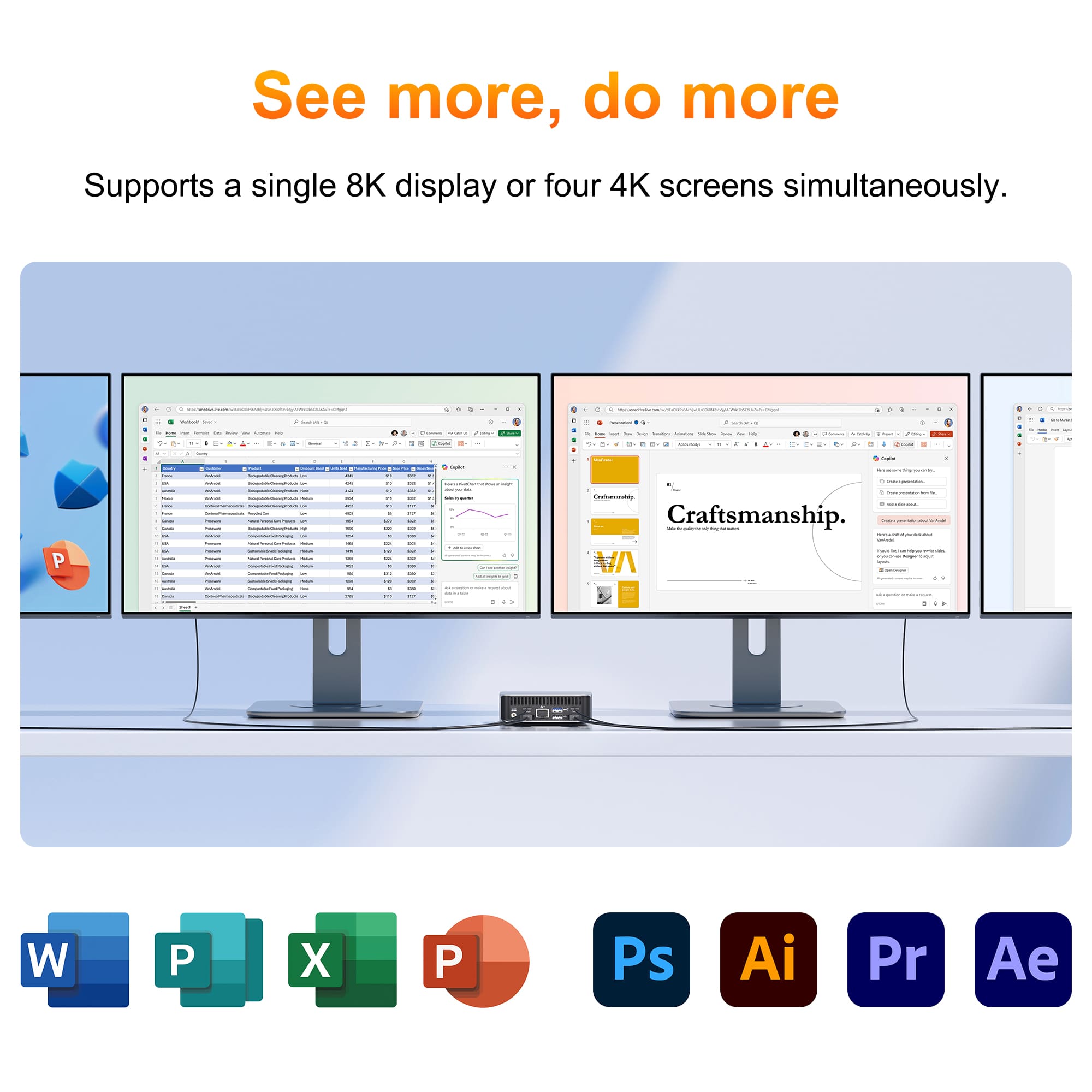 - Efficient scalability – Equipped with DDR5 RAM and PCIe Gen 4 NVMe SSD, plus an M.2 2242 SATA SSD slot (Up to 1 TB)