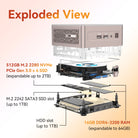 Additionally, it offers a dedicated M.2 2242 SATA3 SSD slot(up to 1TB) and an HDD slot (up to 1TB), allowing for flexible storage expansion when needed.